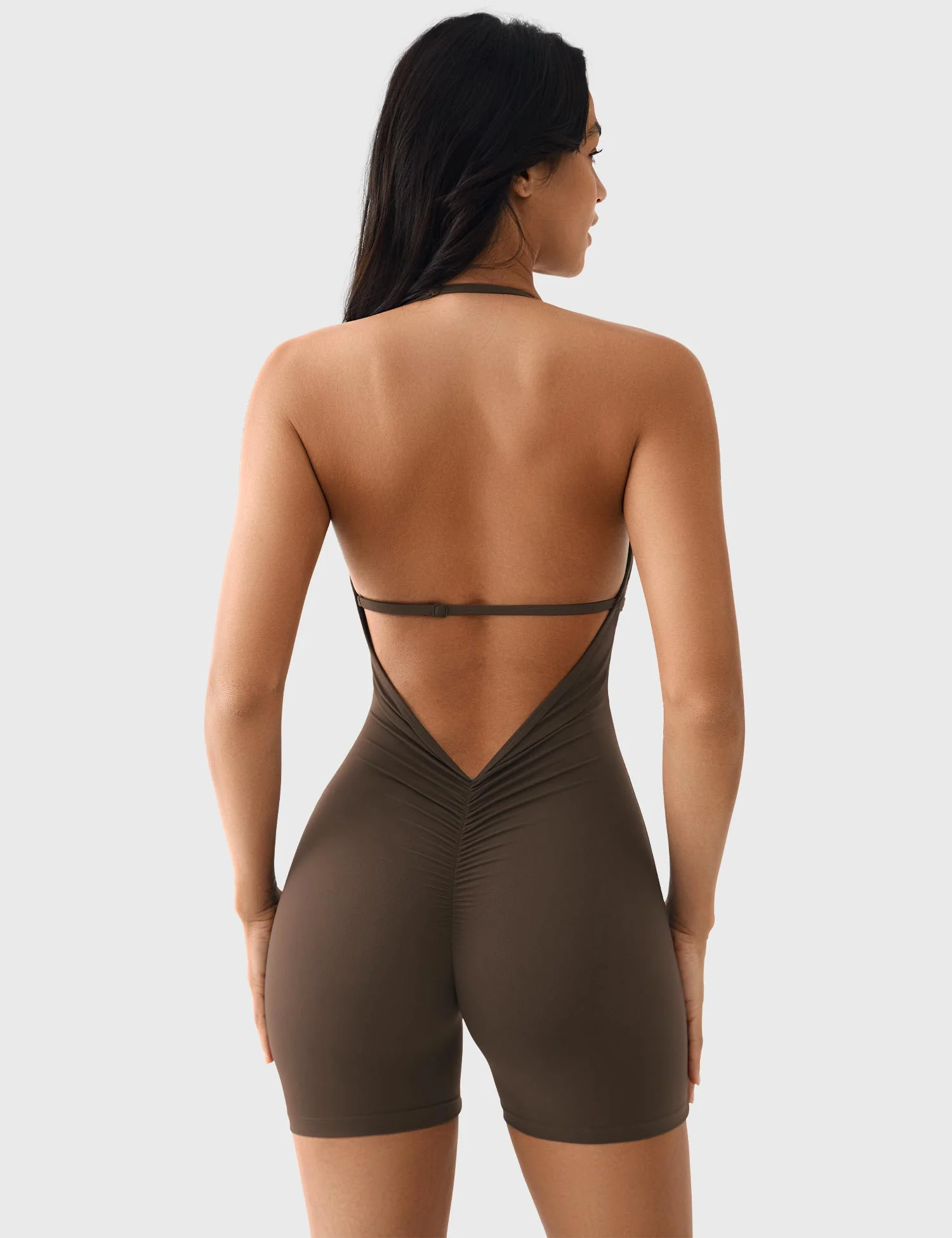 The Taylor Halter Romper combines soft, breathable and 4-way stretch for ultimate comfort and freedom of movement. With a flattering V-neck, adjustable straps, and a butt-lifting design, it creates stunning curves while ensuring a smooth look. Ideal for daily wear or workouts, it keeps you feeling confident and chic!